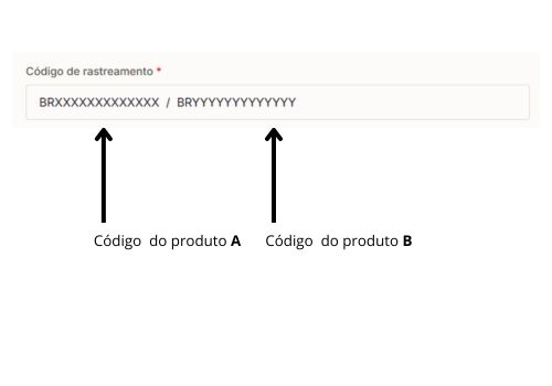 Na compra de dois ou mais produtos pode ocorrer de um produto sair de uma região e o outro de outra, neste caso você receberá mais de um código de rastreio. a informação será no seguinte formato: